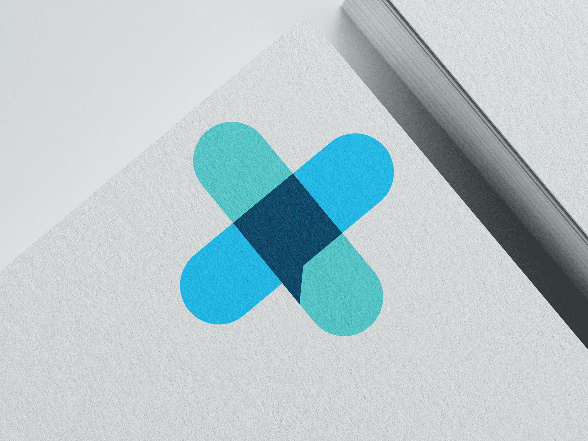 At the heart of the visual identity is a custom logo mark that brings together two core ideas: the universally recognised healthcare cross and a speech bubble, integrated through overlapping shapes and negative space.